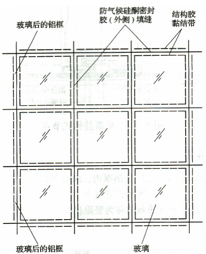 如圖下圖所示,隱框玻璃幕墻檢測是將玻璃用硅酮結(jié)構(gòu)密封膠(簡稱結(jié)構(gòu)膠)黏結(jié)在鋁框上,在大多數(shù)情況下,不再加金屬連接件。‘因此鋁框全部隱蔽在玻璃后面,形成大面積全玻璃鏡面。