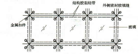 高度不超過4.Om的全玻璃幕墻,可以直接以下部為支承;超過4.Om的全玻璃幕墻,宜在上部懸掛。肋玻璃通過結(jié)構(gòu)硅酮膠與面玻璃黏合。